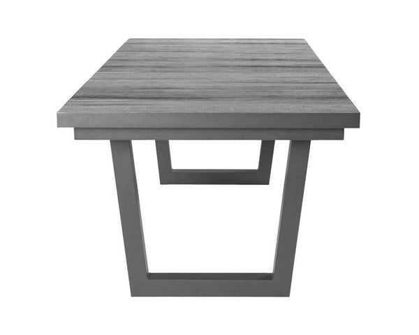 Mit dem Ausziehtisch Monaco/Komido 200/260x100 cm holen Sie sich ein Stück Natur auf Ihre Terrasse. Die Tischplatte in authentischer Holzoptik in grauer Farbe verleiht Ihrem Außenbereich eine warme und einladende Atmosphäre. Das robuste Aluminiumgestell sorgt für Stabilität und ist gleichzeitig leicht zu reinigen. Dank der praktischen Auszugsfunktion lässt sich der Tisch flexibel an Ihre Bedürfnisse anpassen.